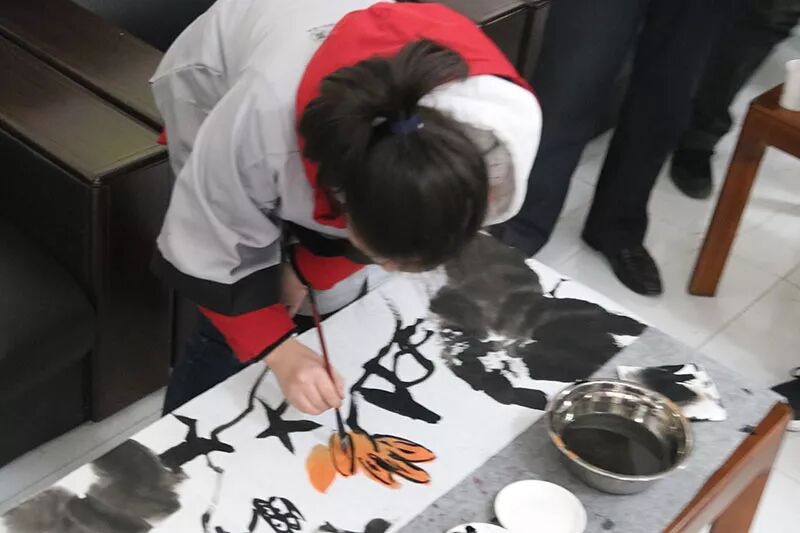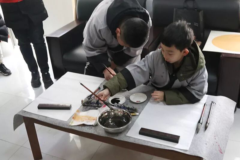教育基地里学习国画的小朋友们还在现场作画,并将这些画亲自交到了爷爷奶奶的手上。